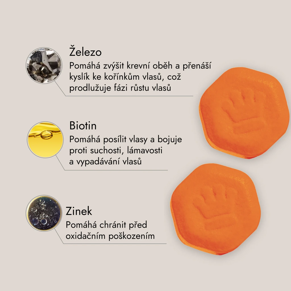 Tablety nabité vitamíny a minerály pro posílení růstu vlasů a nehtů. Exkluzivní receptura s biotinem, melatoninem a dalšími 10 složkami pomáhá předcházet ztrátě vlasů a zabraňuje jejich řídnutí. Účinnost potvrzují nezávislé klinické studie.
