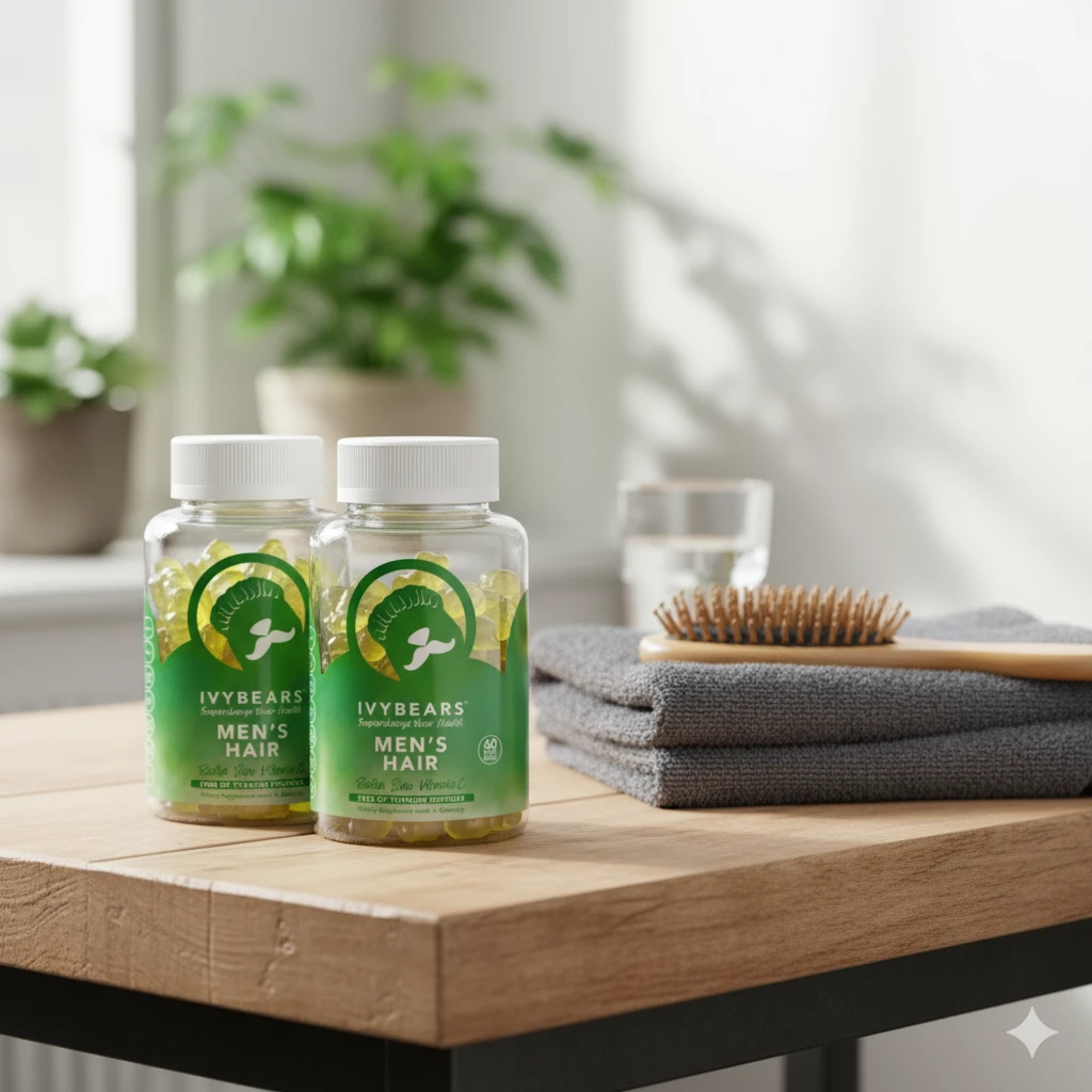 Gumoví medvídci pro husté a zdravé vlasy. Výhodné balení na 3 měsíce. Vitaminový komplex pro muže s obsahem biotinu, kyseliny listové a vitaminu C podporuje udržení a růst zdravých vlasů. Příjemná ovocná chuť a složení vhodné pro vegany. Nejprodávanější vitaminoví medvídci v Evropě.