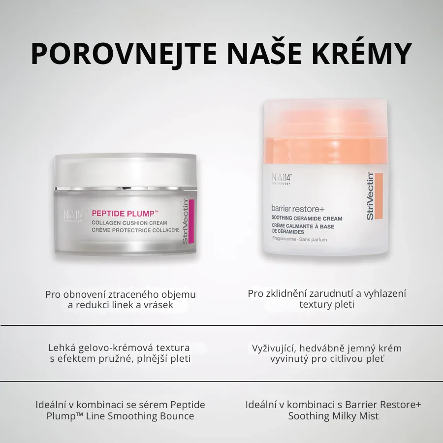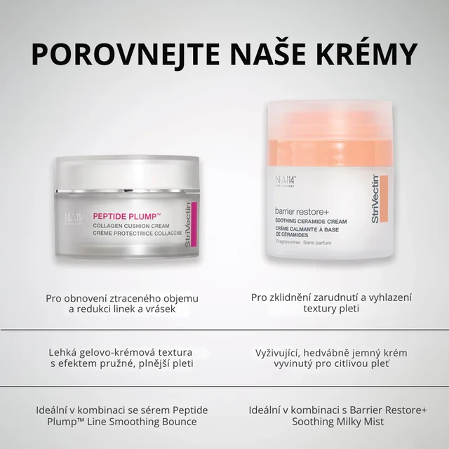 Ceramidový hydratační krém podle klinických testů posiluje kožní bariéru už po jediném použití. Zklidňující krém podporuje dlouhodobou vitalitu pleti, cíleně řeší suchost, začervenání i nerovnoměrnou texturu – tedy hlavní projevy narušené kožní bariéry. Receptura obsahuje extrémně výkonnou molekulu NIA-114® podporující obnovu kožní bariéry a exkluzivní peptid Turmeric-146®. Jde o nejlepší hydratační krém StriVectin pro citlivou pleť.