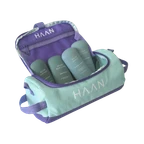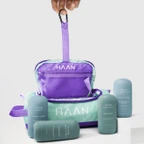 Cestovní set HAAN s kosmetickou taškou. Obsahuje 4 tělové a vlasové přípravky v cestovních velikostech – sprchový gel, tělové mléko, šampon a kondicionér. Receptura s prebiotiky je navržena pro zdravější pokožku i vlasy. Praktickou velikost si můžete vzít i na palubu letadla – stačí sbalit a vyrazit.