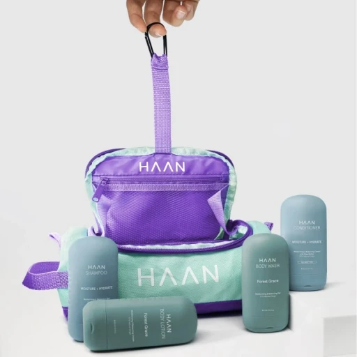 Kosmetická taštička HAAN je perfektní na cestování – dostatečně prostorná, ale přitom skladná. Velikost je navržena pro uložení cestovních 100ml velikostí šamponů, kondicionérů a dalších kosmetických nezbytností značky HAAN.